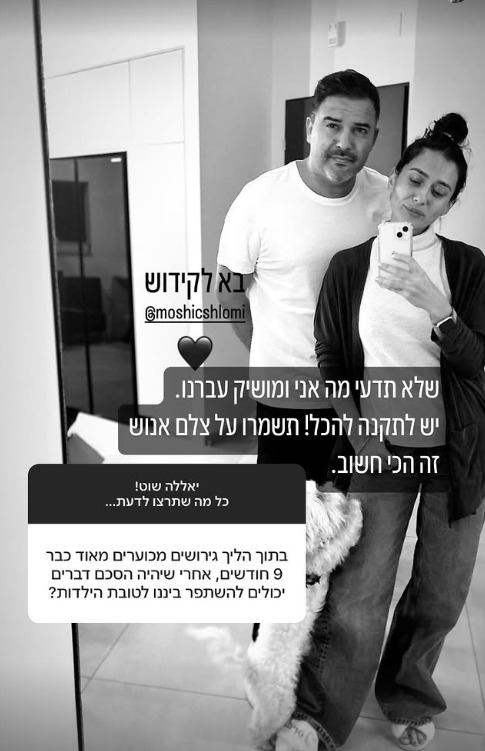 "שלא תדעי מה אני ומושיק עברנו. יש לתקנה להכל! תשמרו על צלם אנוש, זה הכי חשוב".