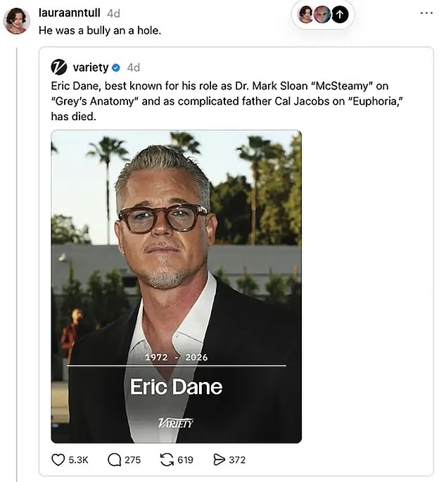 לורה אן טול, שהייתה ניצבת בסדרה "האנטומיה של גריי", פתחה במתקפה חריגה נגד השחקן המנוח, אשר הלך לעולמו בתום מאבק במחלה. "הוא היה אדם פחדן, בריון", היא כתבה עליו, "הוא התעלל בי על הסט - אני הסיבה שהוא פוטר". ברשת יצאו נגדה: "הוא מת ולא יכול להגן על עצמו - אז עכשיו את אמיצה? זו לא כנות, זו פחדנות. תתביישי"
